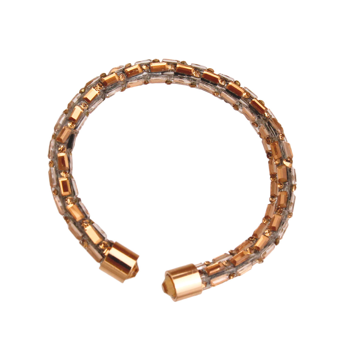 Gold Metal and Gold Crystal Rhinestone Tube Adjustable Bracelet