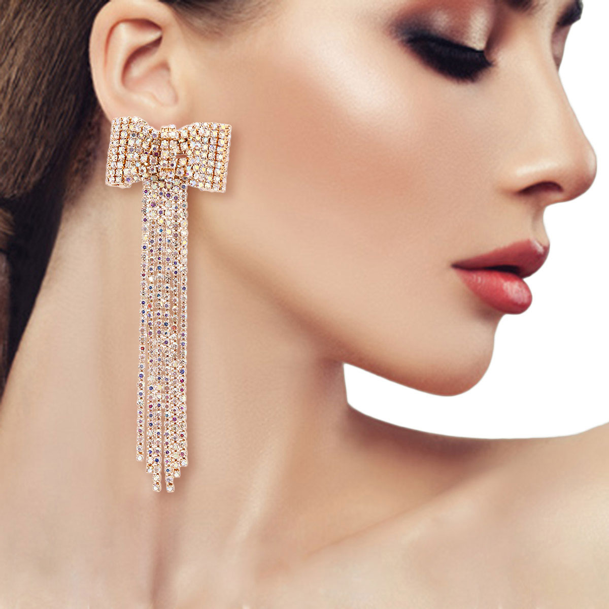 Aurora Borealis Bow Fringe Earrings