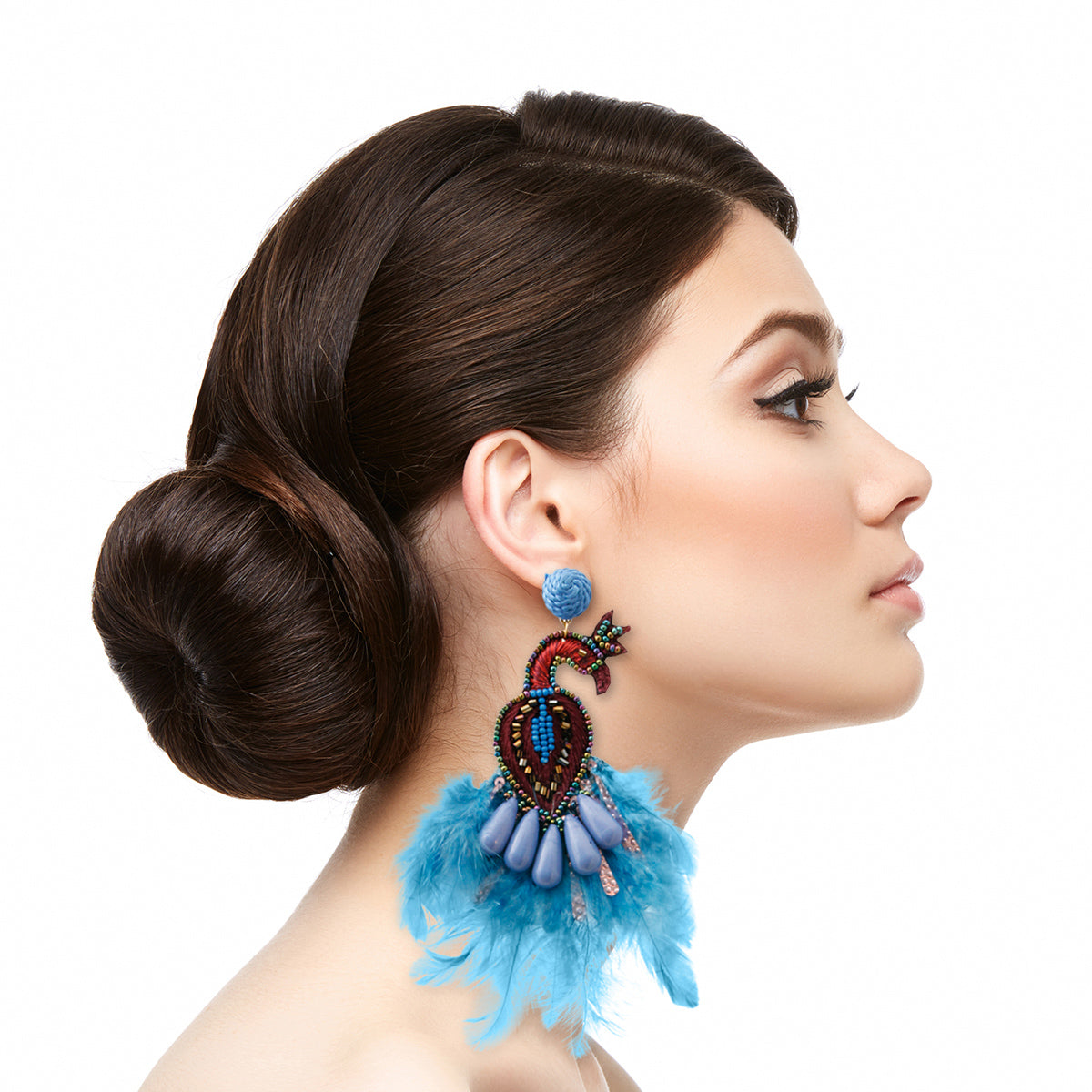 Peacock Bead and Feather Earrings