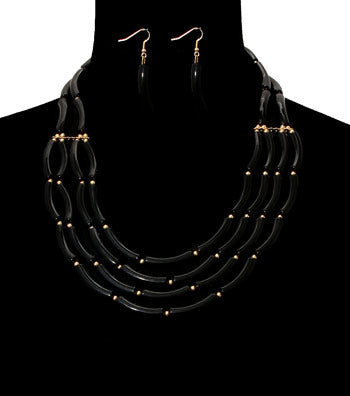 Black acrylic penne shape layered necklace set with lobster clasp closure