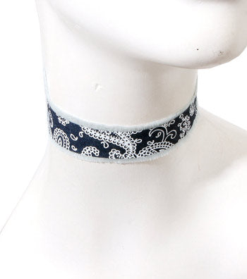 Bandana pattern Denim choker with lobster clasp closure