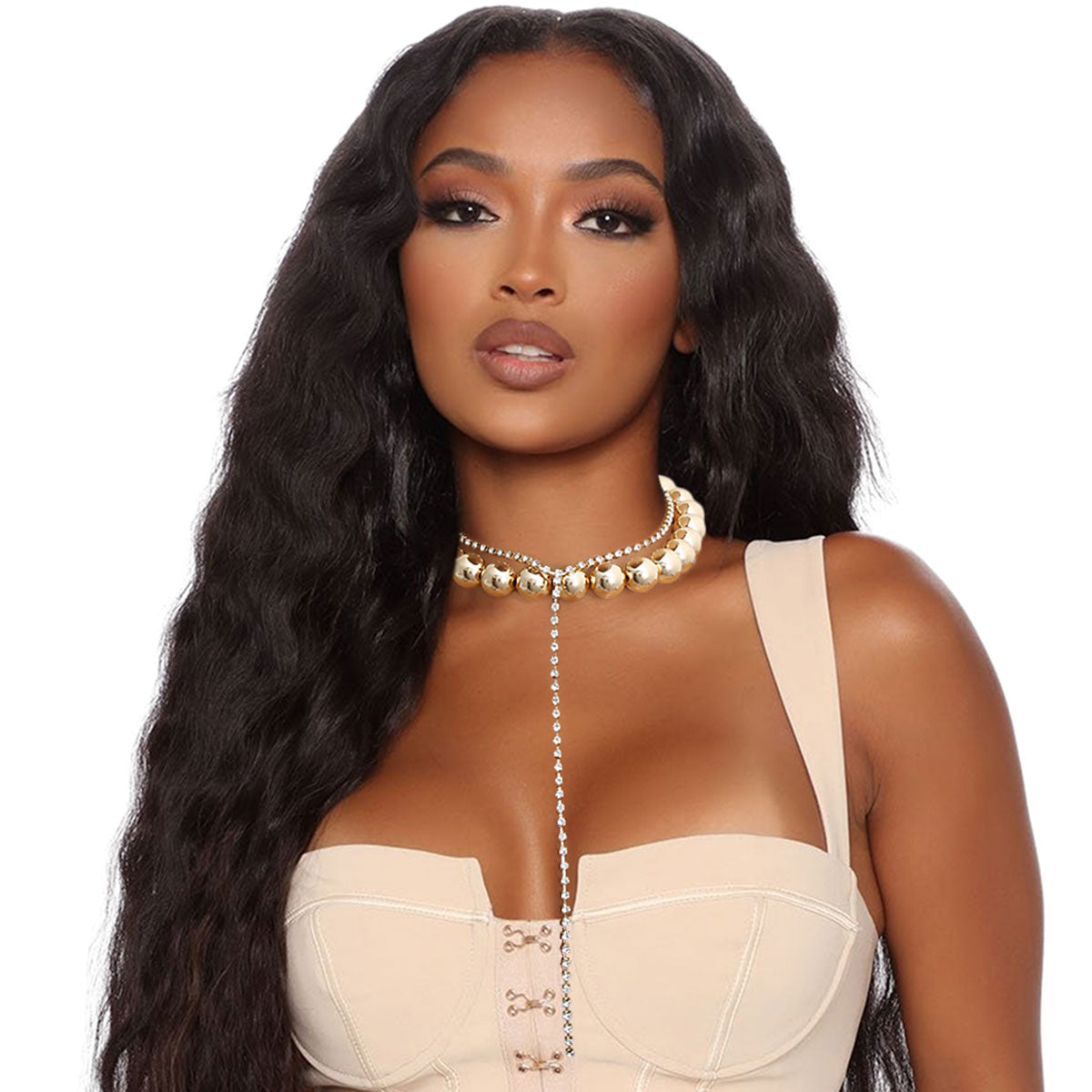 Gold Ball and Y Rhinestone Necklace