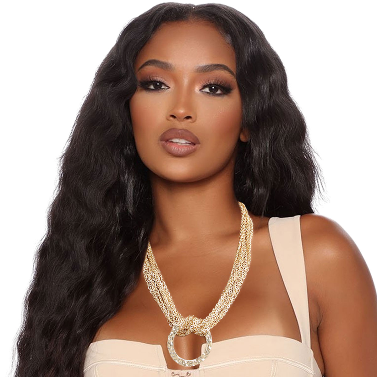 Gold Metal Multi Strand Layered Chain Necklace Featuring Removable Metal Hoop Ring Pendant. Can be worn various ways. Hoop measures 1.85 inches