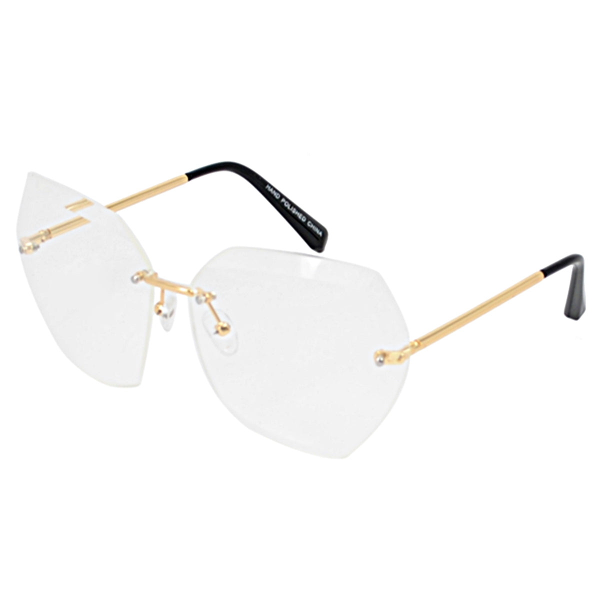 Gold Rimless Clear Beveled Glasses