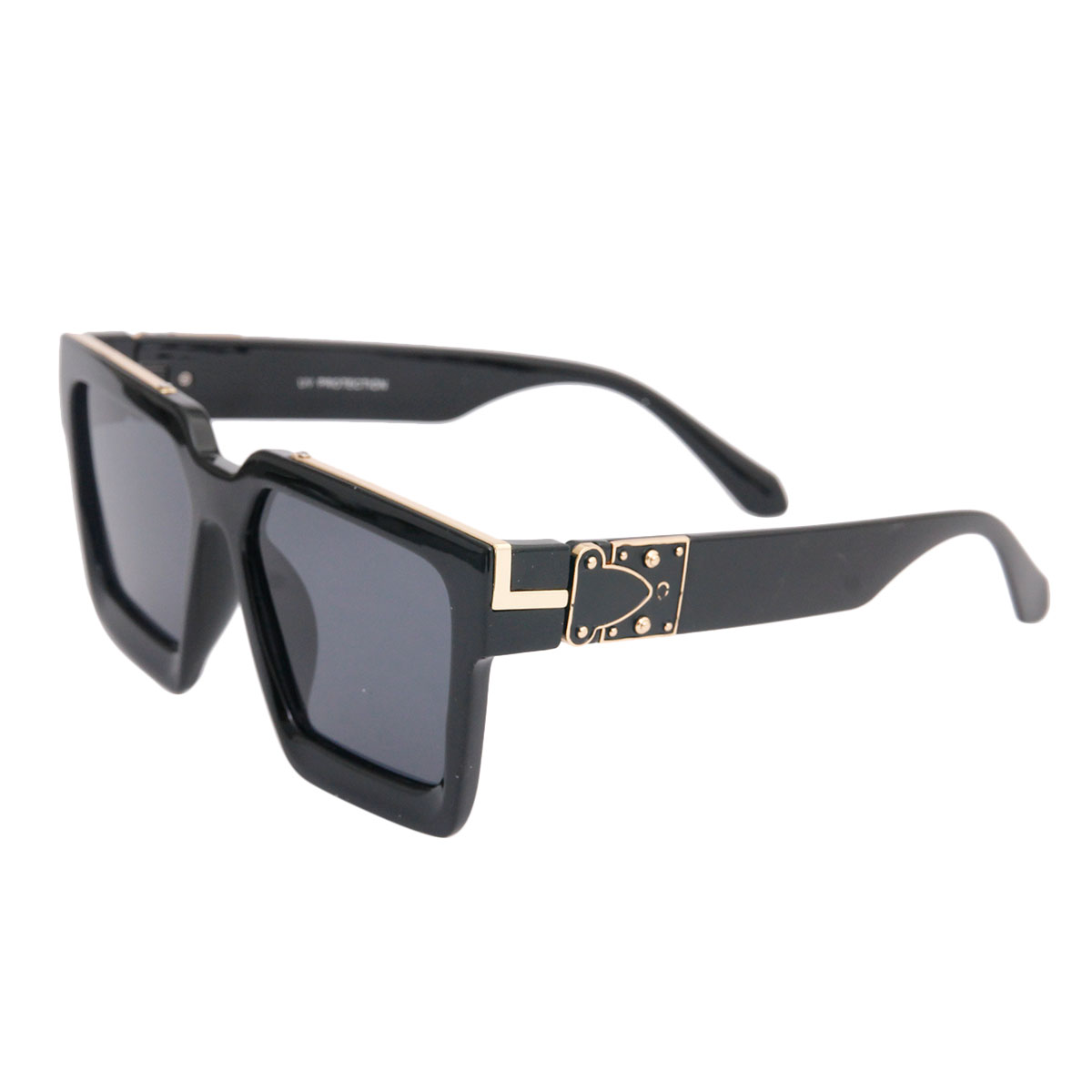 LV Millionaires Style Thick Black Square Gold Edge Sunglasses