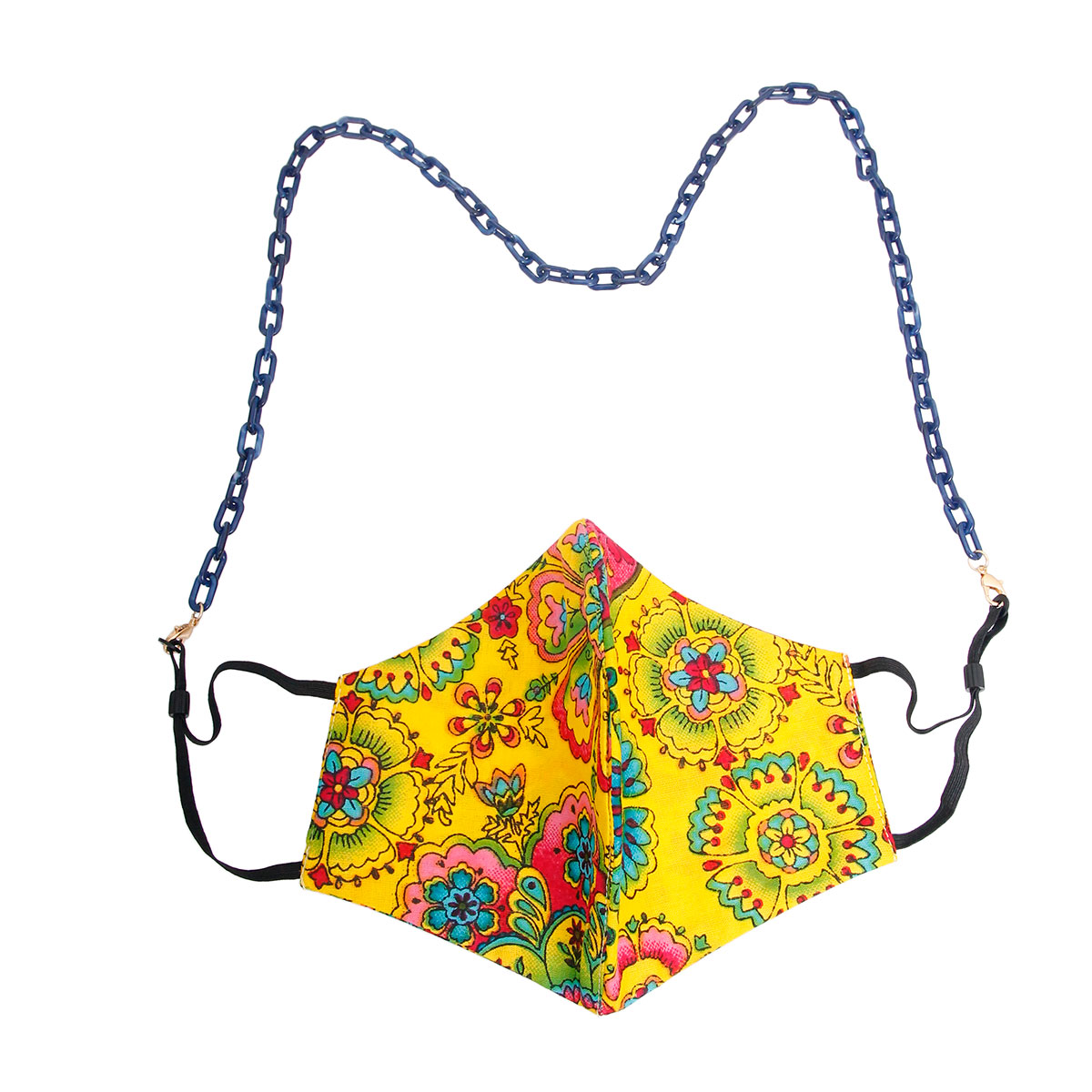 Navy Resin Oval Link Face Mask and Sunglasses Chain Featuring Lobster Claw Clasp and Clear Sunglasses Strap