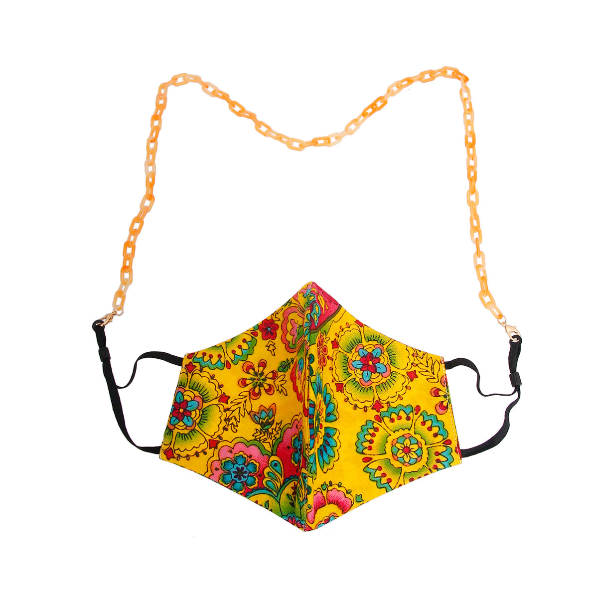 Orange Resin Oval Link Face Mask and Sunglasses Chain Featuring Lobster Claw Clasp and Clear Sunglasses Strap