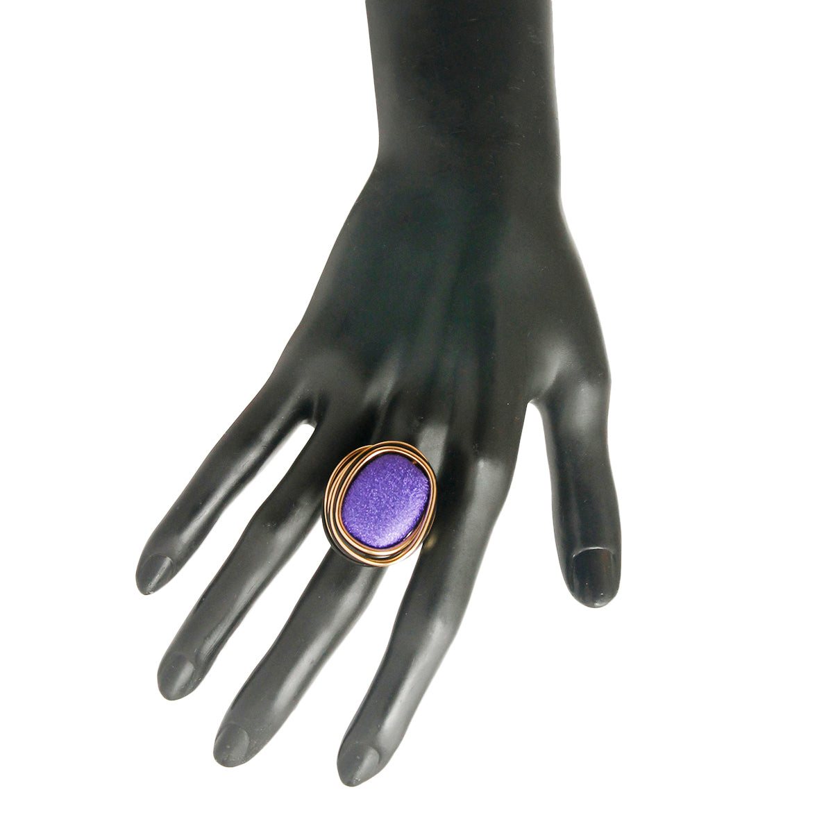 Gold and Black Metal Coiled Wire Stretch Ring with Purple Detail. 1.25 inches long
