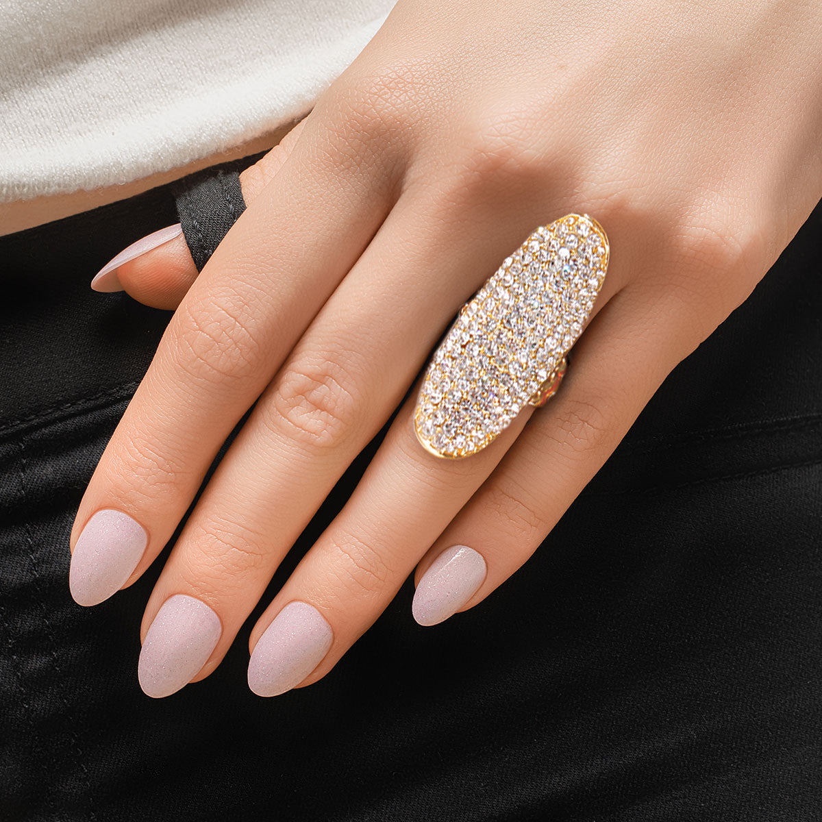 Rhinestone and Gold Long Oval Stretch Ring. 2.1 inches long